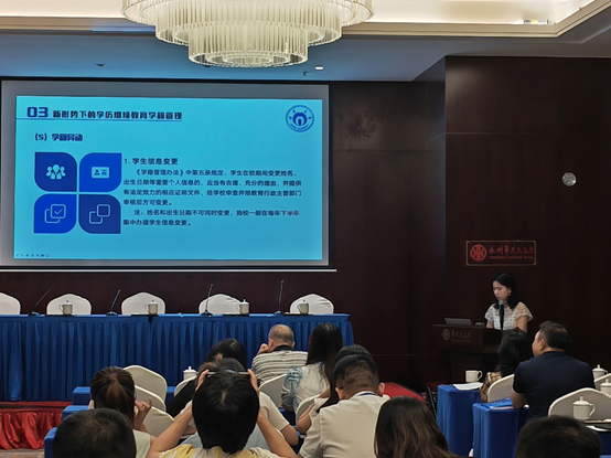 工作会议之后,由继续教育学院赵桂芝副院长主持,会议进行了三个业务专题培训。继续教育学院招生与教务办公室主任汤晓兰、校外教学点管理办公室主任彭金生和湖南世纪超星公司刘人洋分别做了《新形势下问鼎在线官网(中国)校外教学点教学与学籍管理》《新时代下问鼎在线官网(中国)教学点设置与管理》;《问鼎在线官网(中国)校外教学信息化管理系统操作》专题培训。